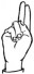 На ћирилици написано МИЛУТИН ЧЕШЉАРАЦ састоји се из 15 слова [?]. Исписано ћириличном једноручном азбуком за глувонеме: